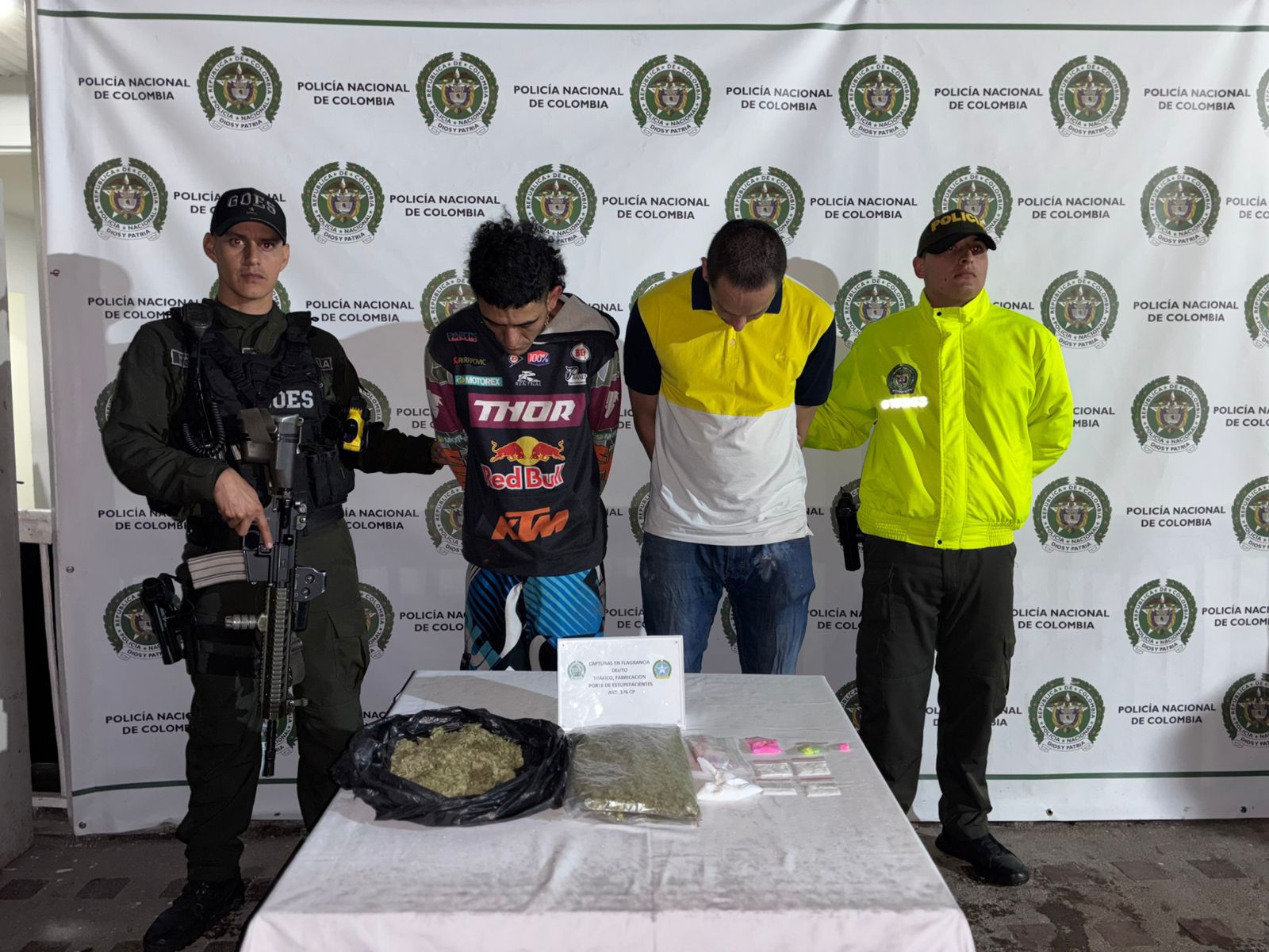 Santa Rosa de Cabal, Risaralda En desarrollo de las actividades investigativas que se venían adelantando desde hace varios meses, en coordinación con la Fiscalía General de la Nación, la Seccional de Inteligencia Policial y la Seccional de Investigación Criminal, realizaron registros de allanamiento, se intervino el Micro territorio 1, donde se logra la captura de dos (2) actores delincuenciales conocidos con alias de “Rubén” y alias «orejas», los cuales se dedicaban a la venta de sustancias estupefacientes, quienes eran los encargados de empacarlas en mínimas cantidades y posteriormente ser distribuida a los habitantes en condición de calle y menores de edad.